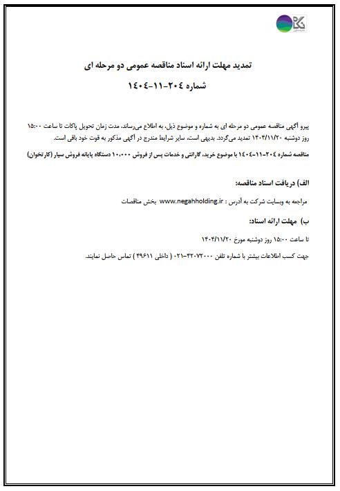 تمدید مناقصه خرید 10،000 دستگاه کارتخوان سیار بهمن ۱۸, ۱۴۰۴